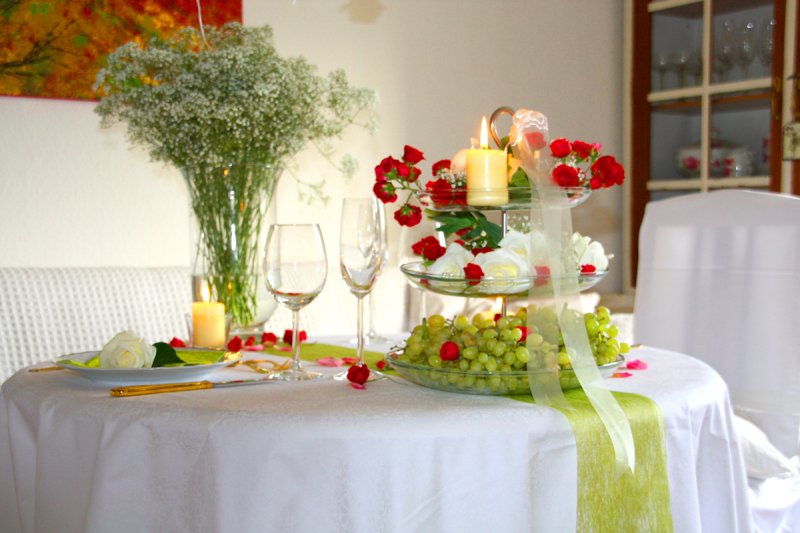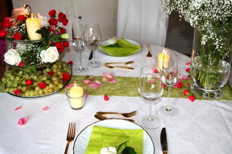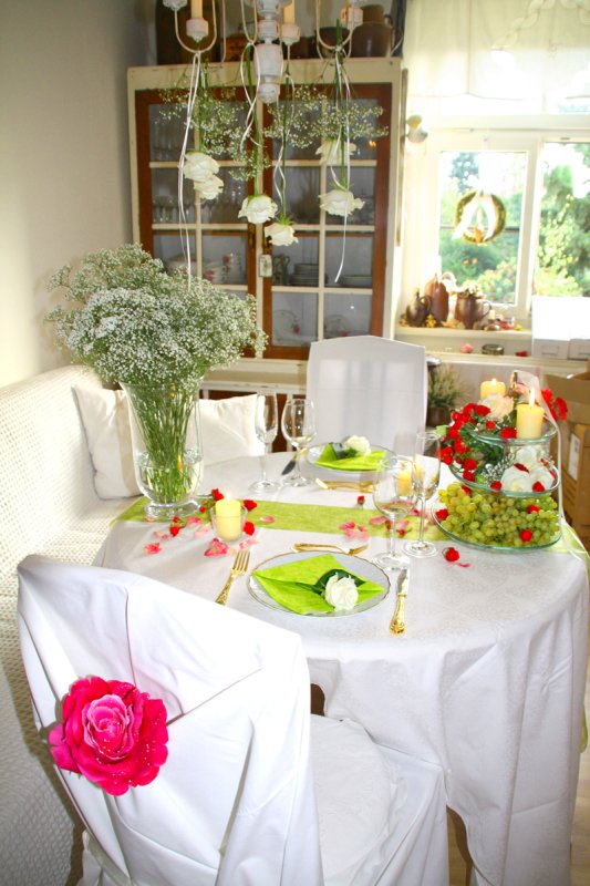 Du kannst den Tisch an Hand der Fotos selbst gestalten, oder wenn das nicht Dein Ding ist auch von mir gestalten lassen, Dann kannst Du Dich ganz auf die Dinge konzentrieren, die Dir wichtig sind. Zum Beispiel: das Essen, die Musik, der Wein oder Dir Zeit für Dich nehmen.